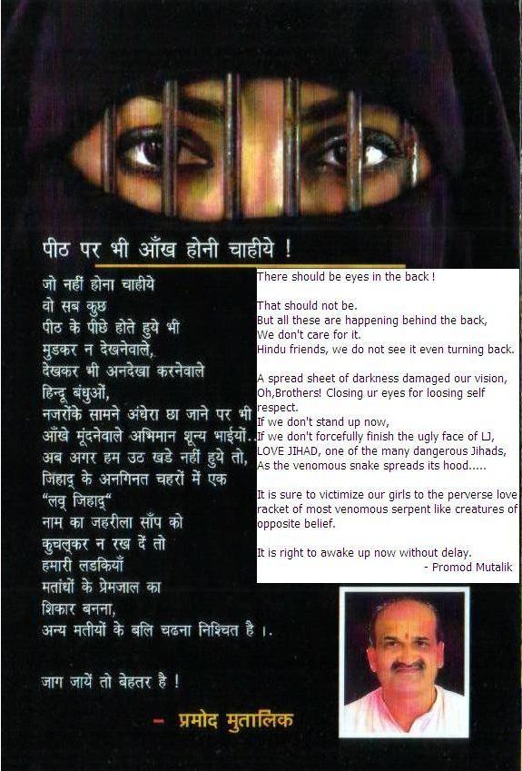 jahan par bhi hum is prakar ki harkate dekhate hai wahan par bina ladkiyonki maa baap ko puche in gunda tatwo ka nash kar dena chahiye. [Whenever we see such malicious work upon Hindu girls, we should finish such goondas without asking anything even the guardians of the involved girl]