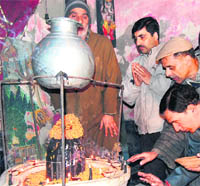 Hundreds of Kashmiri Pandits gathered in this temple and prayed for peace and communal harmony in the Jammu and Kashmir State. The Shiva Abhisek and the Vedic Havan were the main attractions of the entire ceremony and rituals performed here.