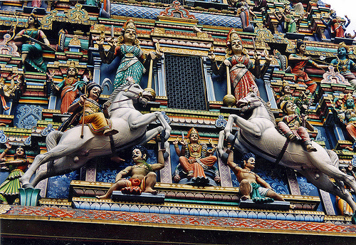 Detail of Hindu Temple Entrance, Kuala Lumpur, Malaysia. All these are setting in a remote past ?