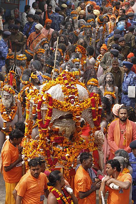 The procession was led by Gyan Das, president of the Akhara Association consisting of 13 orders. Following him were ‘Juna Akhara’ Nagas and the sants including some well-known ones like ‘Pilot Baba’ and ‘Soham Baba’.