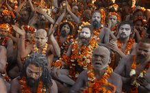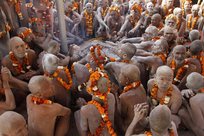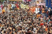 Akhara members reached the Har-Ki-Pauri, the main bathing ghat, in colourful processions as thousands of pilgrims and followers lined the roads with folded hands.
