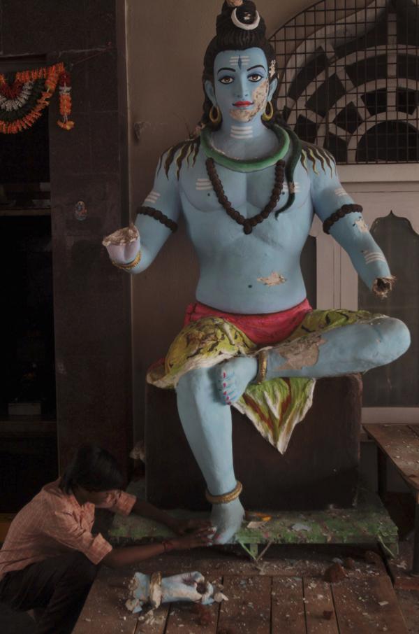 Replying to a query, he said the decision to relax curfew would be taken tomorrow Pic.^Lord Shiva Idol broken by fanatic Muslims during Hyderabad Riots after monitoring the situation. He warned that stern action would be taken against those involved in communal clashes.