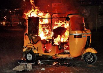 Fanatic Raioters Brunt an Auto-Rickshaw in Hindu area of Hyderabad City. Pic. The Hindu.