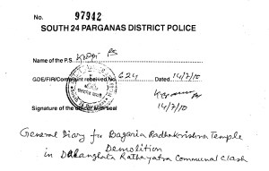 General Diary made in Kulpi Police Station by Hindus.