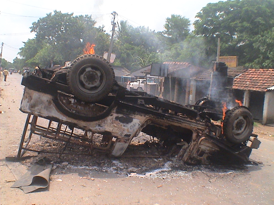 One police jeep has been totally torched. One police wireless phone set was snatched away.