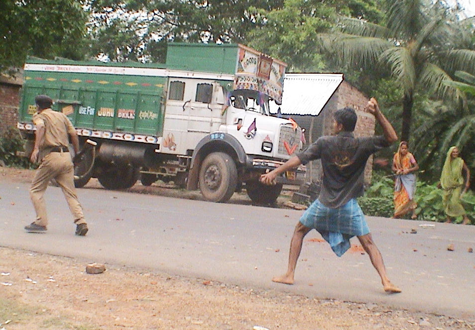At 11 am police reached Hotuganj. They tried to remove the obstruction on road. Clashes started with police. The Muslim mob stoned the police heavily. The O.C. of Dimond Harbour P.S. Sanjib Banerjee got serious injury. Other 8 police persons too have been injured.