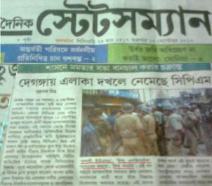 Today on 10th Sept. one morning daily, named ” Dainik Statesman” ( phone 033-2212-7070-76, 033-2212-7990-92, Fax 033-2212-6181/9473 and email : thestatesman@vsnl.com) fomented upon the Hindu Activity Groups and Hindu web blogs and sites like ‘Probashi USA’, ‘Hindu Existence’, ‘Satyameba Jayate’ and ‘Hindu Samhati’ for their prompt circulation of news of Deganga even far from America in the cause of protecting Hindus in danger. According to the Bengali daily, the news are provocative and partisan in nature. And all these sites have been targeted the MP of the affected area along with the other TMC leaders.