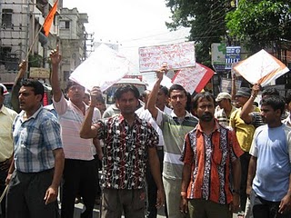On August 8th Hindu Samhati organized protest meetings in many places to express their solidarity for the Deganga Hindu victims . There were road blockages by HS supporters at two location in Barasat. Samhati President Tapan Ghosh attended a rally in Baguihati.