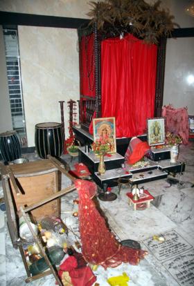 Eyewitnesses said some six youths led by one Mohammad Masud of the adjacent Muslim-dominated area stormed the temple in the port city around 10:45pm by breaking iron gate and wooden doors.