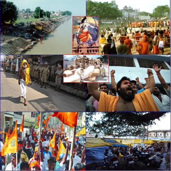 Ayodhya:6th Dec.: Saffron outfits vowed to construct a grand Ram temple at the disputed site while Muslims prayed for building a mosque as the 18th anniversary of the razing of the Babri shrine passed off peacefully in Uttar Pradesh on Monday.