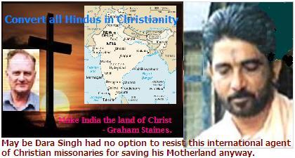 The life imprisonment of Dara Singh reveals the continuing conspiracy of Christian imperialism in India vividly. Dara compelled every concern in Indian administration and judiciary to understand the reality of Christian Social Service @ Conversion at any cost. The subversive activities of various Christian groups in Hindu-tribal prone areas in central region of India including in Madhya Pradesh, Chattisgarh, in Jharkhand and in north-east regions are highly alarming. The nexus between Christian War Group (CWG) and the various Maoist factions is gradually deteriorating  the  peace and welfare process in so many affected places. The overseas Muslim, Christian and Chinese funds have set a goal to destabilize Indian integrity, harmony and prosperity in all possible ways. Indian Nation must move now.