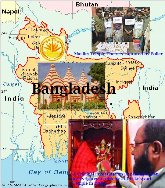 14. On Mar 06,2011 Burglars stole valuables, including five statues and gold ornaments from Radha-Madhab Mandir (temple) near Gollamari Swashwan (cremation site) in the city of Khulna,southern Bangladesh.