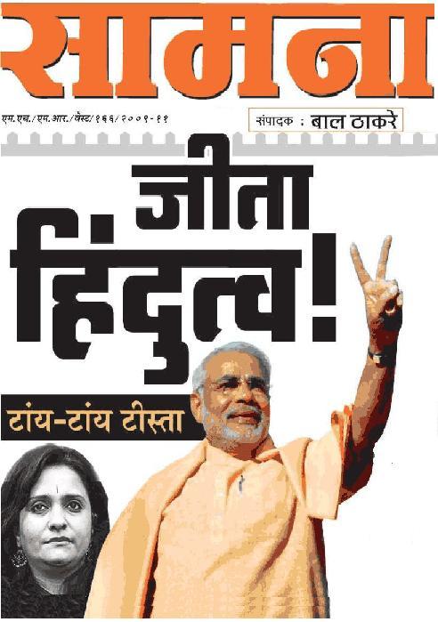 Win of Modi and Hindutva. Good Bye Tista! Cover Page of SAMNA.