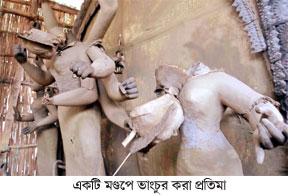 The damages of deities are gross in nature. Islamists in Bangladesh are die hard to protest the rituals of infidels.