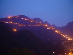 This cave temple has a very popular following from people of all faiths. Among the most revered of shrines, and the oldest in the region, it entails a 13.5 km trek from Katra which in turn is 50 km from Jammu. The route up to the shrine consists of both tiled paths as well as steep staircases, and the devout often walk bare-feet up the Trikuta Mountain. Several shrines, wayside stalls for snacks and beverages and water-points dot the route. An important temple, midway at Adhkunwari, marks a major center of obeisance where the goddess is supposed to have spent nine months on her journey up the mountain.