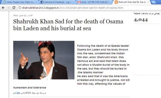 Many people may not be aware of the fact that SRK is a supporter of  world’s most dangerous terrorist late Osama Bin Laden.  SRK was deeply saddened at the death of Osama Bin Laden.  He is an anti-American guy.  Shahrukh had described Osama’s death by America’s a “heinous act”!