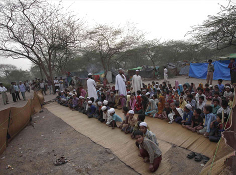 People, who say they belong to the Burmese Rohingya community from Myanmar, sit in an open air madrasa, or a religious school, at a camp in New Delhi. Clear intention to Islamize the issue.