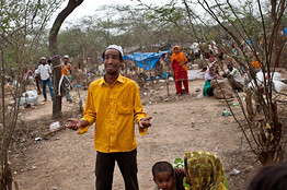 Meanwhile, at a makeshift refugee camp near Pir Baba, women lay under tattered tents, or, as in most cases, under bed sheets held up by four bamboo sticks, an unlikely respite from the summer heat in the capital. Young children and men roamed around aimlessly.