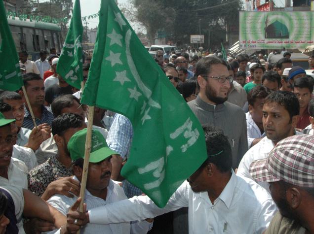 MIM Chief and Communal Member of Parliament Asaduddin owaisi along with his party workers participate in a rally to demand reservation for muslims in Sangareddy. Photo Courtesy: The Hindu.