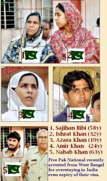 However, all the five Pakistani nationals, all members of a family from Karachi (Rahim Sha Colony, Orangi Town, Sector-11), were arrested on Sunday (1st July2012) for staying well after the expiry of their visa period and were produced in a court on Monday.