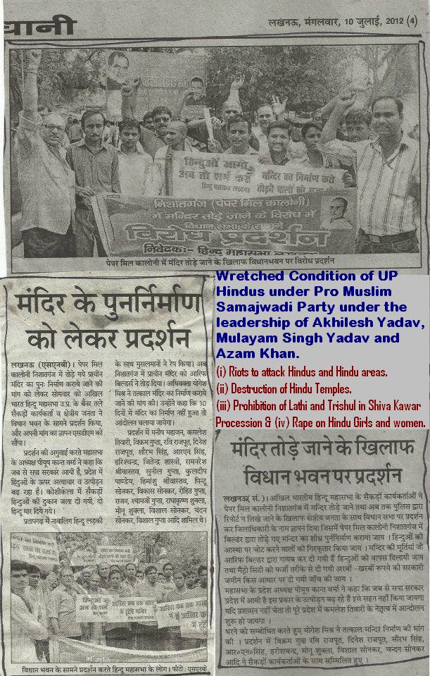 Wretched condition of Uttar Pradesh Hindus under Samjwadi Govt led by Akhilesh Singh, Mulla Mulayam Singh and Azam Khan.