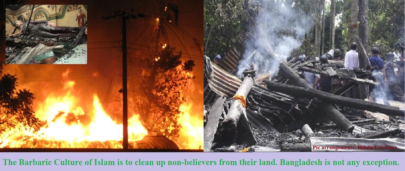 [So. it is established that the anti Buddhist – anti Hindu Force in Bangladesh premeditatedly attacked the peace loving minorities in BD for an ethnic cleansing with the issues of Myanmar Muslim torture or desecration of Quran in very heinous Islamic attitude. Same time a portion of BD media and political part are shedding their tears for such an attack upon BD minorities for a habitual activities of majority Muslims there. All concerned in Bangladesh are supporting the total removal of BD Hindu-Buddhists-Christians-Other minorities from that Islamic land.  Then what is the remedial measures? 1. Protest vehemently to BD Govt. with strictures. 2. Direct intervention of Respected Dalai Lama in this matter. What he is doing right now in his fortified seat in  Dharmshala (India) with huge wealth and international fame?  3. Stop relations with Muslims treating them as the supporters of a most uncivilized and communal groups. 4. Attack Mosques and Muslim in Buddhist Countries, as a tremendous retaliation to sensitize the insane Islamic zealots as the last measure. At least Myanmar and Sri Lanka should start actions. Ed. – HE.]