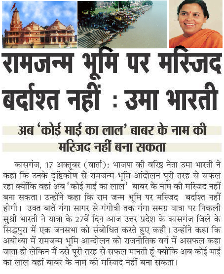 “That is why the word is in the air that the acquiring job the SP government of U.P. will do and the UPA Government led by the Sonia-led Congress would siphon off funds for the plan. Regarding Sri Rama Janma Bhumi if a reckless decision is taken that would lead to grave consequences,” warned Sri Singhal.