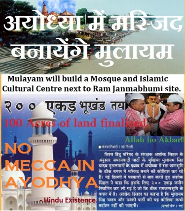 Sri ram janma bhomi is a controversial place as off now. So building of any religious institution over there should be avoided. And why is mulayam singh insisting to build a islamic instituion in ayodhya specially? Why there is on other place in U.P? And what message is he trying to give? JAYATU HINDU RASHTRAM!