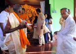 Practising Hindu Sri Pranab Mukherjee, President of India conducts Durga Puja rituals at hometown Mirati.