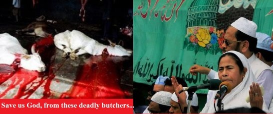 This is an urgent petition, through the Highest seats of this State of ancient heritage and culture within the real democratic texture and humane tolerance, requesting the Government of West Bengal (Paschim Banga), India to take strong action against the errant Officers-in-Charge of Usthi Police Station, Joynagar Police Station and Falta Police Station (all in South 24 Parganas district), who are Promoting Cow Slaughter (to pander to extremist elements) and are thereby openly violating the Honourable Calcutta High Court’s Judgement (dated 2 Nov 2011 and 13 Oct 2011) and Honourable Indian Supreme Court’s Judgement.The embarrassments are piling up from the news of inaction of Administration and the Police from different districts not to check illegal and rampant cow slaughter to hurt the Hindu sentiments in their prime festive sessions. It is heard that the WB Police is arranging sufficient “BLACK PLASTIC TARPAULIN” to cover up all the illegal cow-slaughters in the respective PS areas.We urge the Honourable Home Secretary Mr. Basudeb Banerjee (IAS) to investigate the atrocities being committed by the aforementioned police officers on those tens of thousands of villagers who refuse to kowtow to their dictatorial, unlawful demands that they support and make arrangements for slaughtering of cows on Bakr Eid (which falls on October 27, 2012 – during Durga Puja festival).We urge the Honourable Home Secretary to ensure 100% enforcement of anti-cow slaughter Judgements of the Honourable Calcutta HC and Supreme Court of India.We also urge the West Bengal Administration to stop the official repression of the state’s ancient and vibrant Durga Puja by revoking the ban on the Divine Mother’s immersion on October 26 and 27, 2012.We would like to respectfully remind the administration that banning the centuries’ old indigenous Bengali tradition of Durga Puja immersion (in order to appease a violent, alien, Arabian creed of Bakr Id) is tantamount to turning Bengal (or what is left of it) into another East Pakistan.The whole issue about “cow slaughter” has two negative social implications, aside from its blatantly provocative communal agenda that seeks to create religious tension in society :