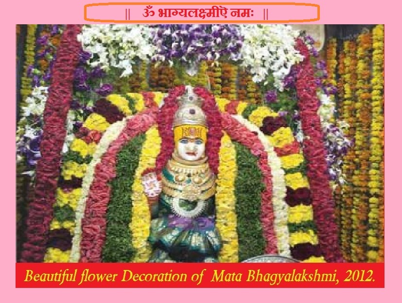 Bhagyanagar (Hyderabad) | 13th Nov. 2012 – Bhagyalakshi Mata Temple is again full of devotees with ringing bell and around the clock rituals set to the Special Puja of Deepavali. The Deity is fully adorned with ‘Bhakti’ and Ornamental flower décors.  One of our Admins have just visited and surveyed the on-going festivities around Bhagyalakshmi temple.