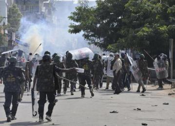 The police resorted to baton charge and fired several teargas shells to disperse the mob, which was pelting stones from three sides of the Charminar. Police said the situation has since been brought under control. Additional reinforcements were rushed to sensitive areas around Charminar. Home Minister Sabita Indra Reddy reviewed the situation with top police officials. She appealed to people to cooperate in maintaining peace.
