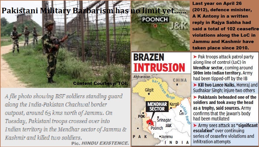Pakistani Muslim troopers kill two Hindu Jawans of Indian Army, behead, mutilate one of them….