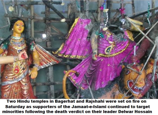 In Noakhali after the pronouncement of the verdict, Jamaat and Shibir activists set fire to a temple and houses of Hindu community.