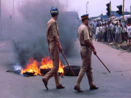 ambedkar-nagarAllahabad | Agencies | Monday 4 March 2013 ::  Policemen were attacked and government property damaged as violence broke out in Uttar Pradesh’s Ambedkar Nagar district after a Hindu leader was shot dead, police said on Monday.