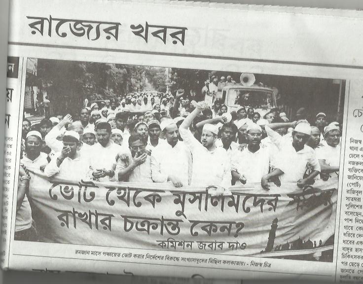 Muslim Organizations hold rally in Kolkata against panchayet poll within Ramzan timings. Photo Courtesy: Bartaman.