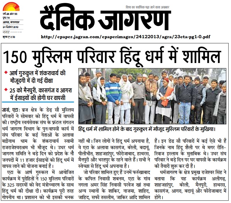 Though some Hindi media like Aaj Tak and  Jagran highlighted this news of huge mass re-conversion in Hinduism, the English media (both print and electronic) skipped the same in a very strange manner.