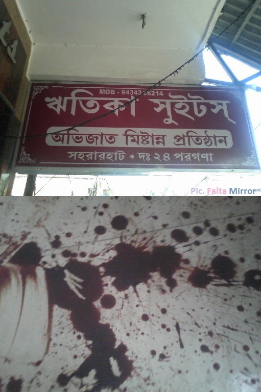 The gory incident took place in the confectionery shop (named Rwitika Sweets) of late Kartik Methia (Ghosh) at Sahararhat, South 24 Pgs, WB on Saturday (29/03/2014) at about 9.30 PM.