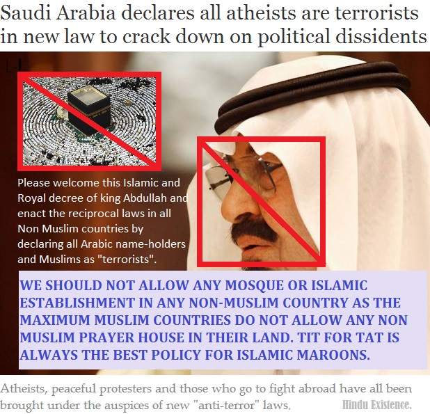 Friends, It’s a Global warning! Please don’t ignore it anyway. Muslim Judge wants to remove Hindu Statues in Malaysia. Saudi Arabia declares all Non Muslims are terrorists in new law to crack down on political dissidents. Jihadi Terrorism is an unthinkable crisis for the Human Civilization. Even then we have to tolerate these filthy Muslim creatures!