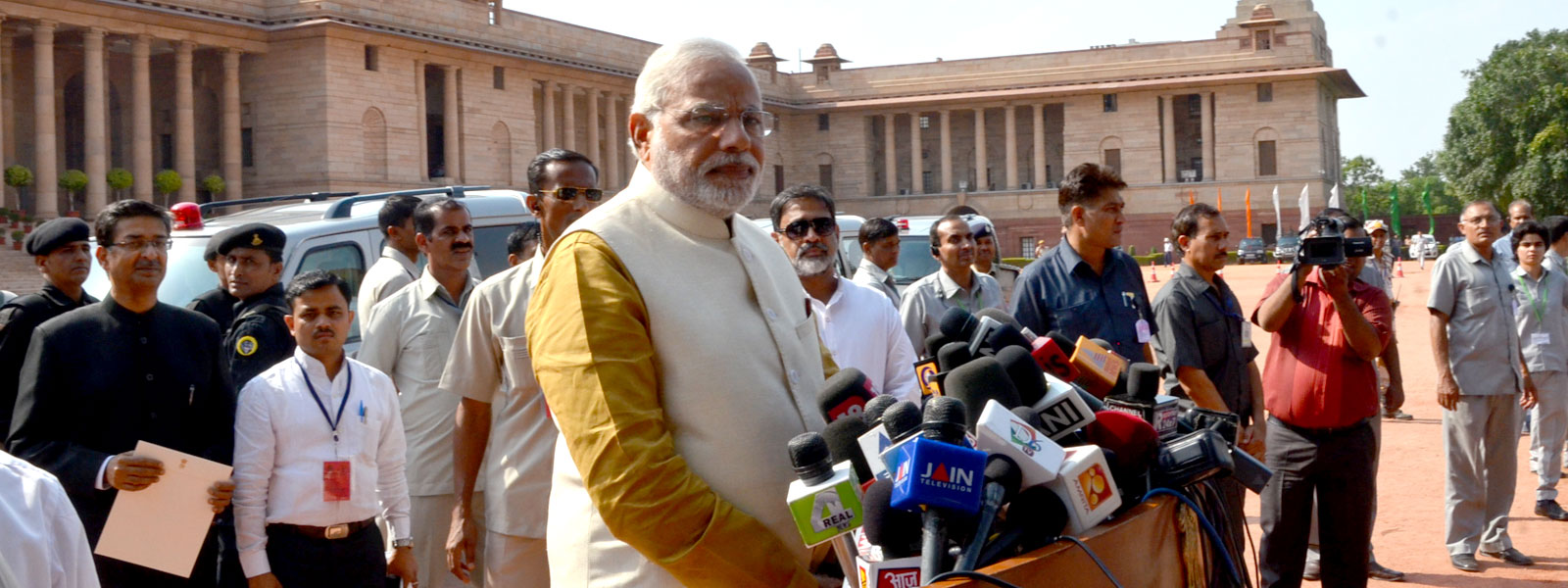 Sri Narendra Modi did not lose sight of the larger responsibility being bestowed upon him and promised to leave no stone unturned for the welfare of “125 crore Indians” in his new role as the Prime Minister. He said that “if each one of 125 crore Indians stepped forward one step, the country will move forward by 125 crore steps”. In such a way, Modi wanted to emphasize the people participation in the Governmental activities.