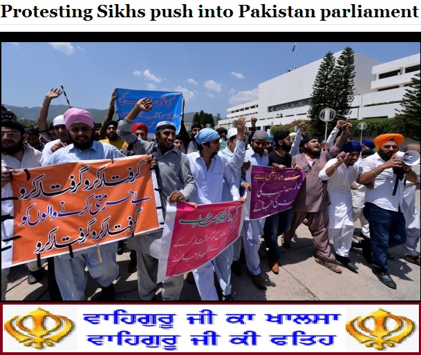 Sikhs from Sindh and Khyber Pakhtunkhwa province had gathered outside parliament to protest against what they claimed was the alleged desecration in Shikarpur of Guru Granth Sahib, the holy book of the Sikh community.