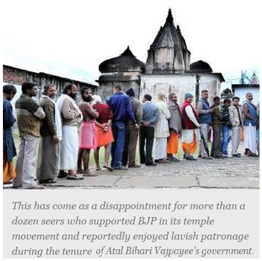 Arshad Afzal Khan | TNN | Ayodhya | May 25, 2014:: Sadhus and senior mahants who spearheaded the Ram temple movement seem to have been given a royal snub by the PMO as most of them have not been invited in the swearing-in ceremony of Narendra Modi.