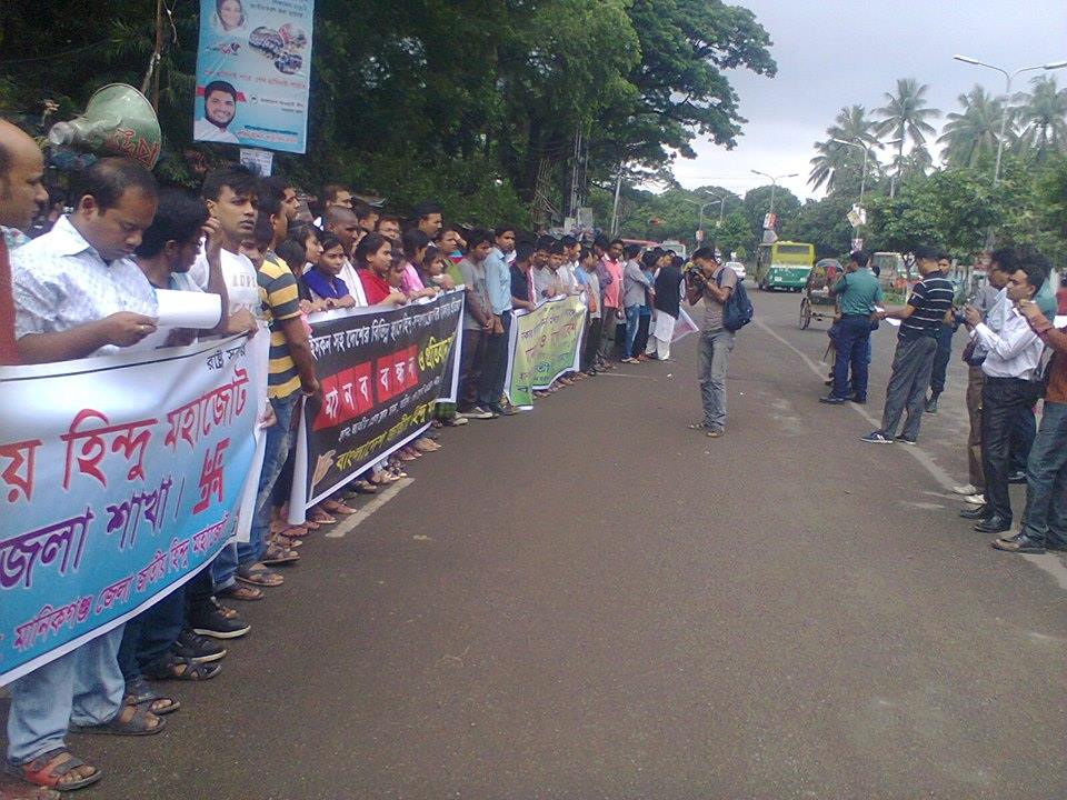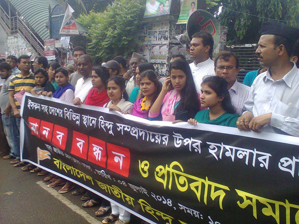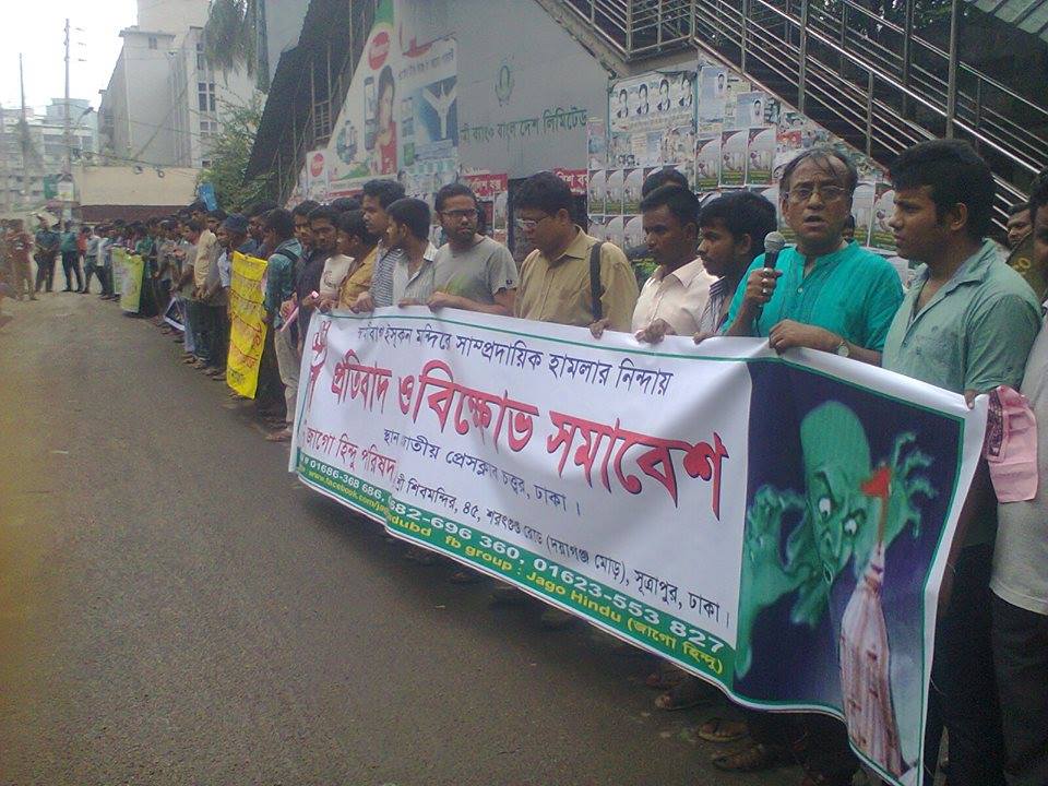 Jatiya Hindu Mahajote (National Hindu Grand Alliance), Bangladesh which is actually a rights body of the Hindu minorities held this rally in front of the National Press Club, where its general secretary, Sri Gobinda Chandra Pramanik said that attacks on the Hindu minorities increased at many places in the country in recent times.