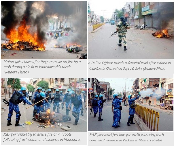 HE Media Bureau | Vadodara (Gujarat) | Sep 30, 2014:: No untoward incident was reported in the city on Monday, which witnessed clashes between two communities over the last four days, but the situation remained tense amid a large police presence.