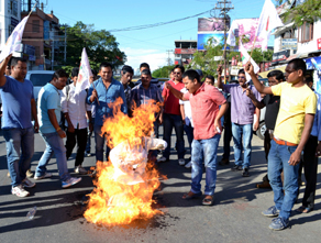 HENB | Guwahati | 31 Oct 2014:: In protest against All India United Democratic Front (AIUDF)’s alleged involvement with the cross–border jihadi elements, several organisations like the Bajrang Dal, the Akhil Bharatiya Vidyarthi Parishad (ABVP), the Viswa Hindu Parishad (VHP), the Bharatiya Janata Party (BJP) and the Hindu Jagaran Mancha jointly had given a call for a 12–hour Assam bandh from 5 am to 5 pm on 31 Oct 2104.