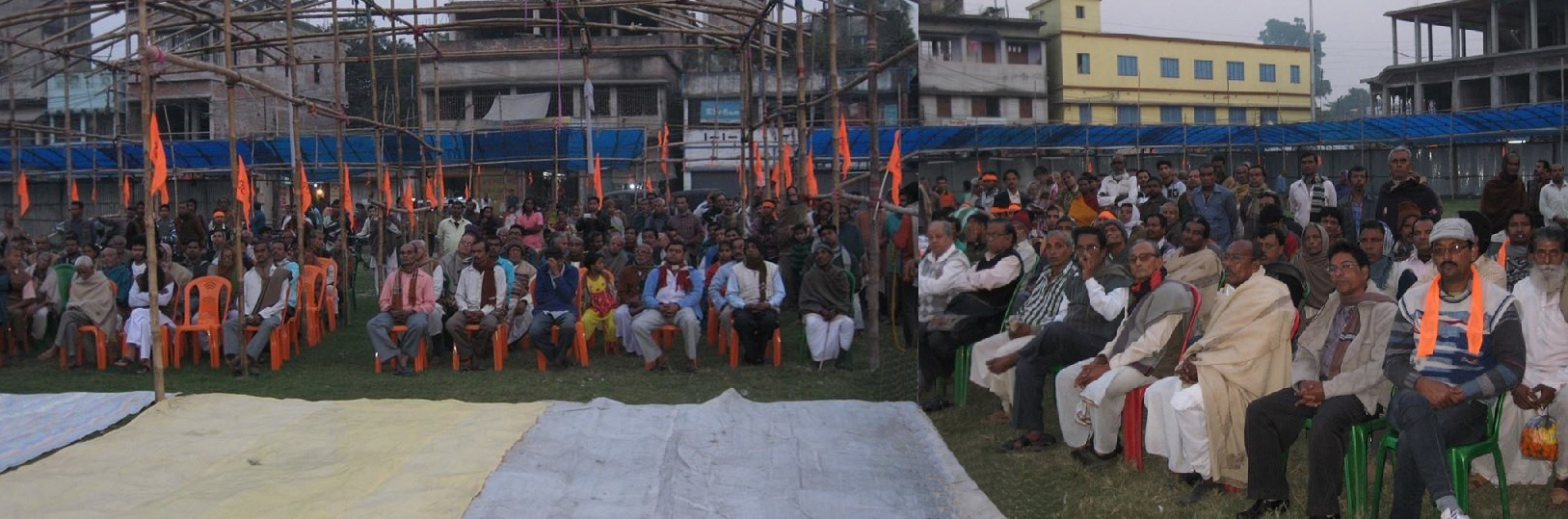 sd 2 tnHENB | Kolkata |  Dec 6, 2014:: Amidst some stray programmes observed by Anti-Hindu Secular and Leftist as ‘Kala Divas (black day)’, the whole country has observed 06 Dec 2014 as Sourjya Divas, the day of Hindu valour and pride. Those who are not enlightened with the Light and Teachings of Lord Rama, they will be always in darkness (kala diwas). Majority enlightened Indians are in mind that ‘Magnificent Sri Ram Temple at Ayodhya Ramjanmabhumi’ will be made as soon as possible. Making Ramjanmabhumi Temple in Ayodhya is now considered as the foundation stone of Hindu Rashtra in Bharat. Upananda Brahmachari, Editor of Hindu Existence Web Site also participated in one important programme of ‘Sourjya Divas’ at Thakurnagar, North 24 Parganas District. Brahmachari was the main speaker of the programme. West Bengal. The meeting was will attended and arranged by Gaighata Block  (North 24 Dist) Committee of Hindu Jagaran Manch (HJM). Sri Dilip Ghosh, WB Unit Chief Organiser of HJM, other Hindutva activists like Sr. Advocate Ratneswar Sarkar, Advocate Tushar Tikadar, Dr Manaspati Dev were also present in the function and delivered their speech.