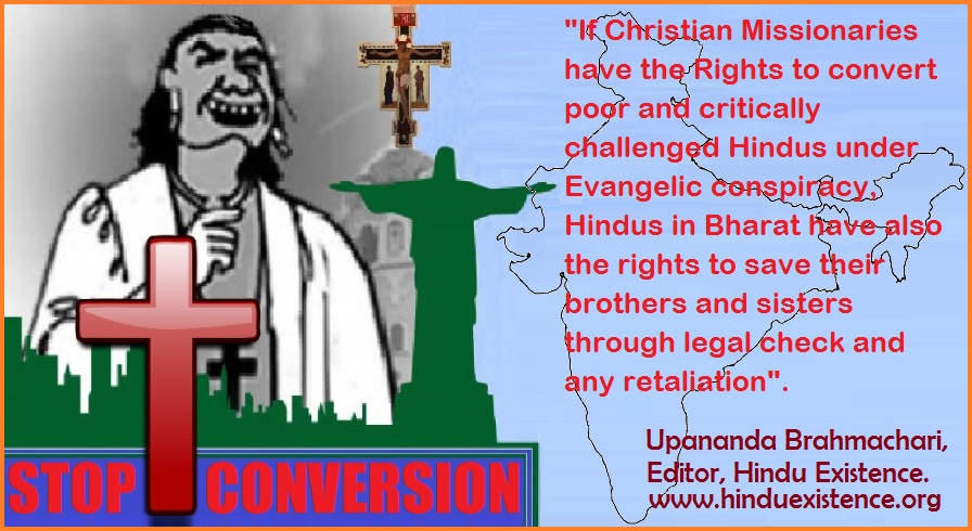 If Christian Missionaries have the Rights to convert poor and critically challenged Hindus under Evangelic conspiracy, Hindus in Bharat have also the rights to save their brothers and sisters through legal check and any retaliation. ~ Upananda Brahmachari.