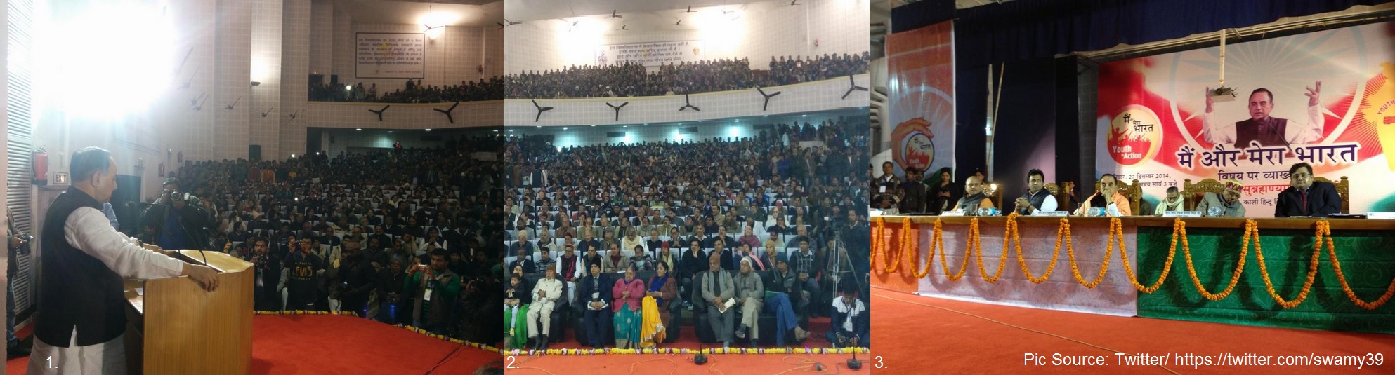 BJP ideologue, an erstwhile Harvard Professor and National Think Tank, Dr Swamy advocated replacing history books written by Britishers in pre-Independence era, alleging they had “distorted” facts about India. A full packed Swatantrata Bhawan of BHU witnessed an eloquent and versatile Dr Swamy with some more expectations.