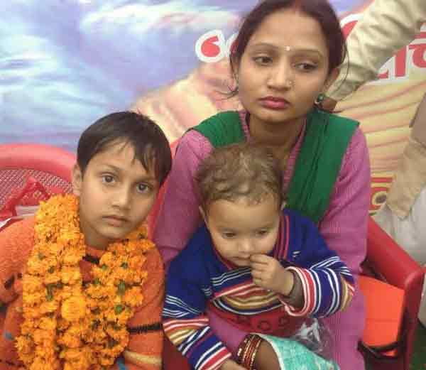 विशाल हिंदू सम्मेलन के दौरान हिंदू धर्म अपनाने वाला परिवार।