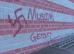 Interesting enough that the same ink, color, mode of hatred was seen also in Europe a month ago in the wall of a French synagogue. Who are behind this international conspiracy of hatred and making a situation of suspense and suspicion, while the whole world should be united against ISIS, BOKO HARAM and the others believe in JIHAD and RADICAL ISLAM!